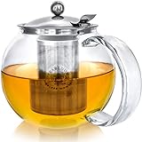 • OFFRE : La théière en verre avec couvercle et tamis en acier inoxydable au design intemporel a une capacité de 800 ml, ce qui correspond à environ 3-4 tasses. Elle est idéale pour la préparation de thé en vrac, de tisanes, de thés aux fruits, de sachets de thé, de fleurs de thé, mais aussi de café, de thé glacé, de jus de fruits et de sodas. Livrée dans une boîte cadeau de qualité.